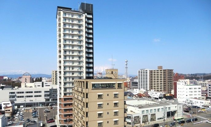 This modern apartment, located in Morioka City, Iwate Prefecture, offers a comfortable and secure living environment. The property is a 3LDK layout with a total floor area of 66.12 square meters, situated on the 10th floor of a 14-story reinforced concrete building constructed in May 2024. The building features a distinctive white-lined facade and contains 74 units in total.