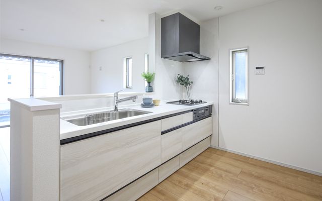 The homes are designed with family comfort in mind, featuring key points like an LDK over 15 tatami mats in size, wide balconies, and two-sided natural light in all rooms. The well-equipped kitchens are counter-style with a gas cooktop, dishwasher, and water purifier. Other notable specifications include a walk-in closet, shoe closet, pantry, storage in all rooms, a shower-equipped vanity, bathroom dryer, bathroom heating, two or more toilets with water-saving features, and double-glazed windows. The exterior lots offer a spacious garden, parking for three cars, corner lot advantages, south-facing road access, and a front road width of over 6 meters.