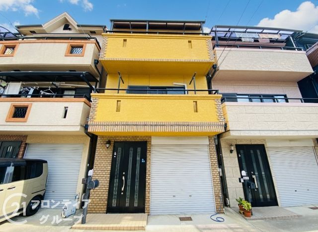 Conveniently located in Kadoma City, Osaka Prefecture, the property is approximately a 12-14 minute walk from Osaka Metro's Nagahori Tsurumi-ryokuchi Line's Kadomaminami Station. Daily necessities are close at hand, with a FamilyMart convenience store just a 2-minute walk (110m) away and a supermarket (Marutoku Market Kadomaminami Store) within an 11-minute walk (810m). The property also benefits from a garage that protects your vehicle from the elements, and the front road is approximately 6.7 meters wide, making parking easy.