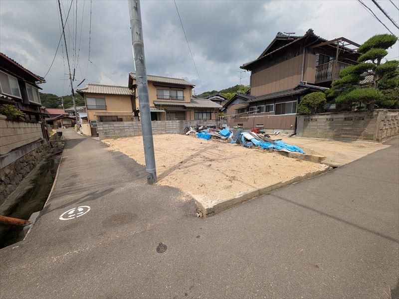 This vacant residential plot of land is located in the coastal city of Tamano, Okayama Prefecture. The property offers a total land area of 85.69 square meters (approximately 25.92 tsubo) and is situated in a flat, corner lot location. According to the agent's detailed notes, the property is equipped with access to propane gas, city water, sewer, and electricity. The road frontage details specify that the land fronts a 2-meter wide public road to the south with a 4.6-meter paved frontage, and a 2-meter wide public road to the west with a 13-meter paved frontage.
