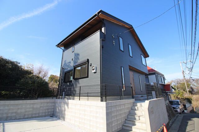 This property is a newly built detached house located in Yokosuka City, Kanagawa Prefecture. It offers a comfortable 3LDK layout with a total floor area of 104.33 sqm (approximately 31.55 tsubo). The land area is a generous 265.82 sqm (approx. 80.41 tsubo), providing ample outdoor space. The house features a bright living area with excellent ocean views, creating a serene and open atmosphere. Parking is convenient with space for two large vehicles at no additional cost.