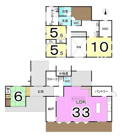 This expansive 4SLDK detached house, built in 2011, offers a generous living space of 195.26 square meters on a substantial plot of 476.49 square meters. The property is currently vacant and ready for a new family to move in. The layout includes a bright and open 33-jo (approximately 59.4 sqm) living-dining-kitchen (LDK) area, a 6-jo Japanese-style room on the first floor, and three additional Western-style rooms on the second floor, providing ample space for family life and guests.