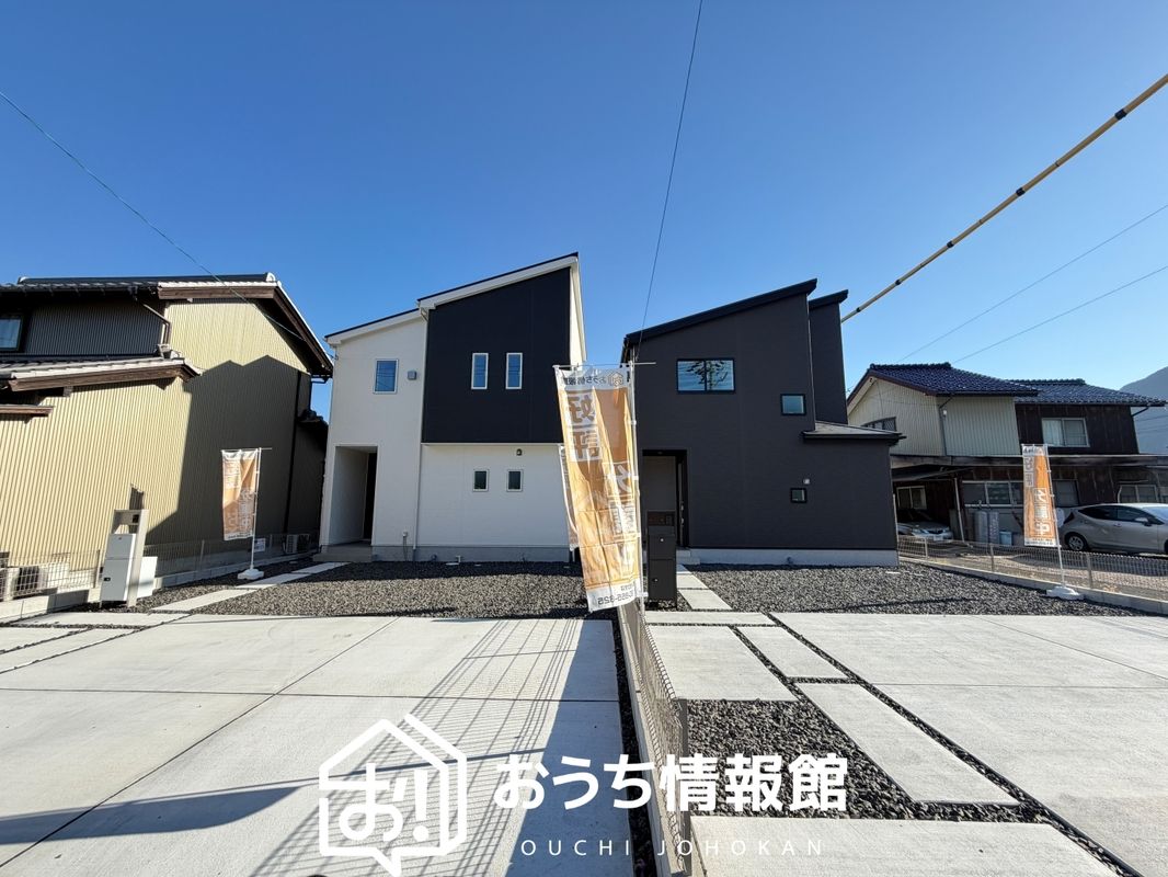 Presenting LIGNAGE, a new development of two detached houses in the tranquil area of Tazu, Nanto-cho, Kaizu City, Gifu Prefecture. This project offers spacious 4LDK and 5LDK layouts, with building sizes ranging from 104.33 m² to 105.16 m² set on generous plots of land between 253.33 m² and 260.55 m². The homes are designed for modern living, featuring wide balconies perfect for drying laundry, a fully-equipped system kitchen with ample storage and a water purifier, and a comfortable one-tsubo (approx. 3.3 m²) bathroom complete with a bath dryer and heater. The natural wood flooring and simple design fittings create a warm and inviting atmosphere throughout.
