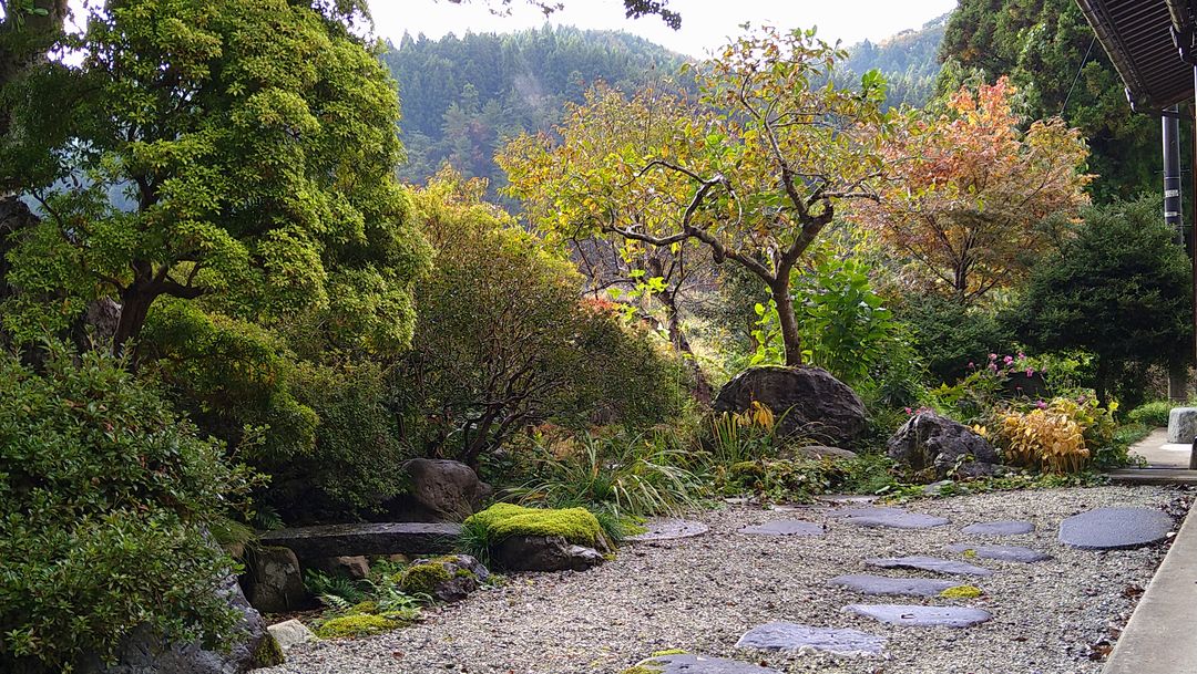 The main house is oriented to the east, featuring a beautifully landscaped garden with moss and white granite gravel. This orientation provides stunning views of the sunrise and moonrise, creating a serene and picturesque setting. The property's layout, with multiple outbuildings, offers significant potential for various uses, most notably as a farm-stay inn or guesthouse, capitalizing on the growing interest in rural tourism.