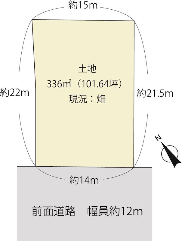 This vacant land plot is located in Yasu City, Shiga Prefecture, offering a spacious area of 336 square meters (approximately 101.64 tsubo). The property is situated in a flat, residential area with a frontage of 14 meters facing a public road over 6 meters wide. The land is designated as a Category II Medium-to-High-Rise Exclusive Residential Zone, with a building-to-land ratio of 60% and a floor area ratio of 200%. There are no specific building conditions attached to the sale, providing flexibility for the new owner's construction plans.