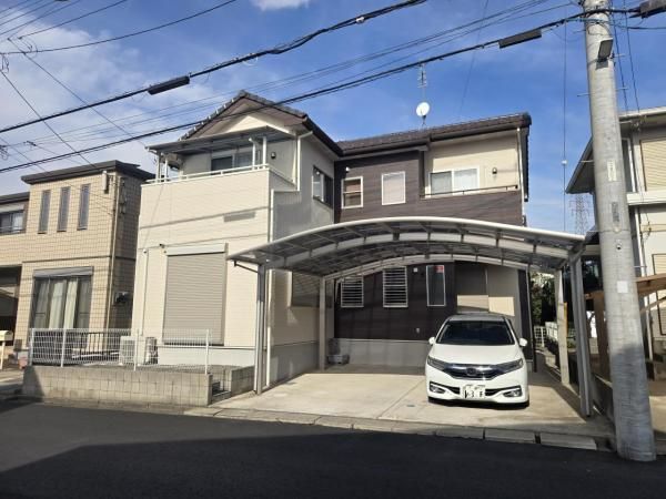 The property is conveniently situated near commercial facilities, making daily life easy. It faces a 6-meter-wide road and includes a carport, providing covered parking for two cars. The house is an all-electric home with an energy-efficient water heater (eco-cute type) and an IH cooking heater. The kitchen is equipped with a dishwasher and water purifier. Bathroom features include an auto-bath system, a bathroom dryer, and a shower-equipped vanity. There are two toilets, and the house has underfloor heating. All rooms have storage space, and the living/dining/kitchen area is over 15 tatami mats in size. The property has a south-facing aspect and features triple-aspect lighting. It also includes a TV monitor intercom and a washlet toilet seat. The property is sold with a disclaimer of seller's liability for contractual defects (現況引渡し(売主契約不適合責任免責)).
