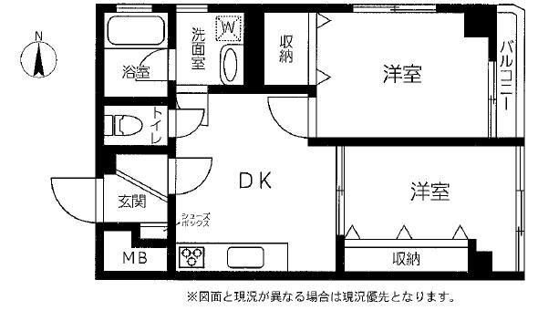 The apartment is conveniently located just a 3-minute walk from Nakano-shimbashi Station on the Tokyo Metro Hōnan Line, providing excellent access to central Tokyo. The layout is a practical 2DK, offering separate living and dining/kitchen areas along with two private rooms. The building structure is durable RC construction. Notable features include the absence of a repair reserve fund and a self-managed building administration.