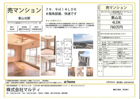 This property is a solidly built reinforced concrete (RC) house, constructed in February 1990, offering a generous 4LDK layout perfect for family living. The total floor area is 79.90 square meters, situated on a plot of land of the same size. The home is located on the 8th floor of an 11-story building, providing excellent views and featuring an elevator for convenient access.