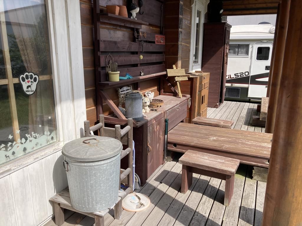 This distinctive property is a log house located in the Takao area of Tomakomai City, Hokkaido. Built in August 2004, this 22-year-old home offers a unique blend of rustic charm and modern convenience. The property features a generous land size of approximately 363.68 square meters (about 110 tsubo), providing ample outdoor space for activities like barbecues. The house itself has a total floor area of 113.78 square meters arranged in a 2SLDK layout across two stories.