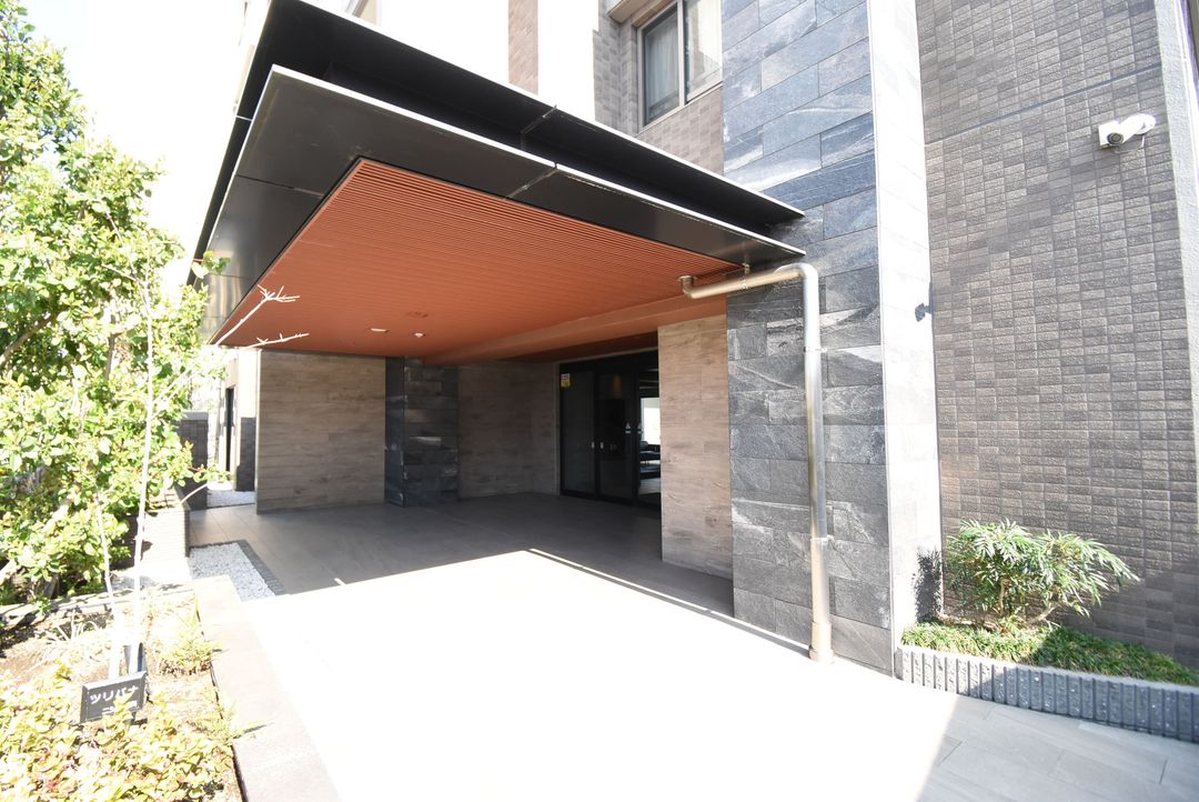 The building itself is an 8-year-old, 7-story reinforced concrete structure with 49 units. It offers secure features including an auto-lock entrance, security cameras, and a TV monitor intercom. Shared amenities include a lobby space, AED, shared restroom, parcel and mail boxes, and a garbage disposal area. The property is pet-friendly, subject to detailed rules. Public transport access is via bus, with the Shimonambu-guchi stop a 6-minute walk away.