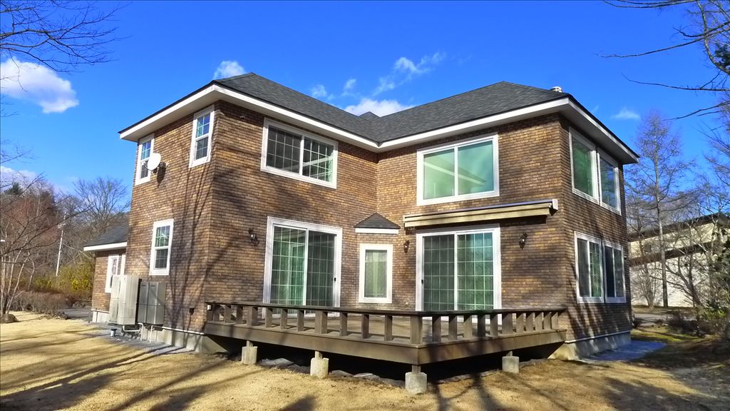 Presenting a sophisticated American-style house constructed in 2020, located within the managed villa district of "The Terrace" in Minami-Karuizawa. This luxury property spans approximately 274 m² and features a 4LDK layout with a built-in garage. The home is equipped with a comprehensive central heating and cooling system throughout, ensuring year-round comfort. A key feature is the high insulation and energy efficiency achieved through triple-glazed resin sash windows on all glass surfaces.