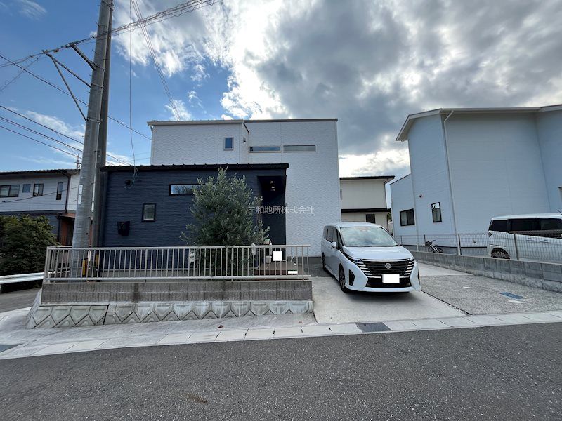 The property boasts a spacious and stylish 3LDK layout. The highlight is the expansive living-dining-kitchen area on the first floor, which exceeds 20.5 tatami mats in size, creating a perfect hub for family gatherings. The kitchen is sleek and modern with a chic design. Upstairs, three well-proportioned Western-style rooms (6, 4.5, and 4.5 tatami mats) all feature ample built-in storage. The bathroom is a standout with a stylish black bathtub and accent paneling, complemented by a separate toilet. The vanity area has a calm, sophisticated atmosphere. Additional notable equipment includes a tankless water heater, underfloor heating, a bathroom dryer, a monitor-equipped doorphone for security, and a walk-in closet. The home is all-electric and incorporates solar panels and a storage battery system, making it an eco-friendly and cost-efficient residence.