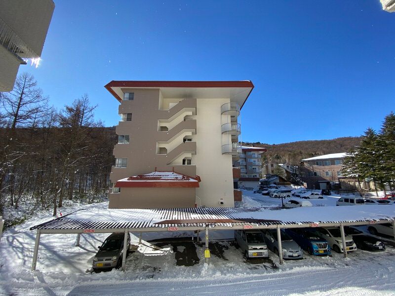 This property is a 1DK unit on the 2nd floor of a 14-story resort condominium building in the famous hot spring town of Kusatsu, Gunma Prefecture. The southwest-facing apartment offers a total floor area of 44.55 square meters with a 6.07 square meter balcony. The building, constructed in October 1986, features a steel-reinforced concrete structure and has undergone a major renovation in November 2022.