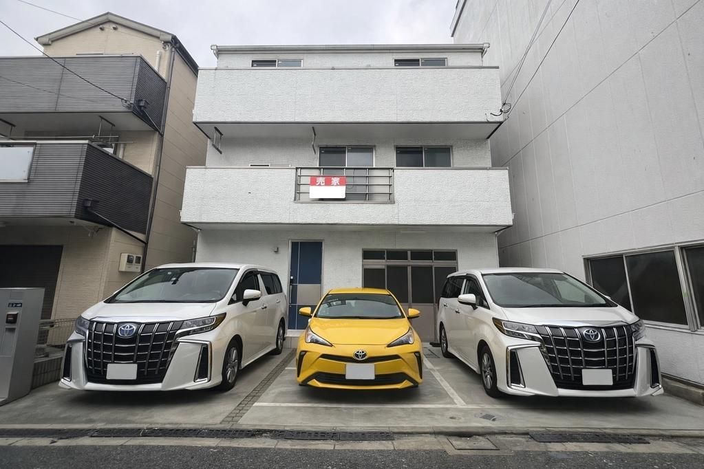 This property is a renovated three-story wooden house located at 4-3-3 Shinomiya, Kadoma City, Osaka Prefecture. The property features a building area of 131.22 square meters on a land area of 97.50 square meters. The layout is 3LDK, and the building was constructed in December 2007, making it 19 years old. The property is currently vacant and ready for immediate occupancy. Renovations were completed in January 2026, including new wallpaper, flooring, interior doors, sashes, and updated water fixtures (toilet, washbasin). The property includes a warehouse and office space, making it suitable for use as a residence with workspace. The kitchen features a system kitchen with a counter, IH stove, and gas stove. The bathroom is equipped with a reheating function, a dryer, and a shower-equipped vanity. Other features include a walk-in closet, storage in all rooms, a TV monitor intercom, floor heating, all-electric system, barrier-free design, and a south-east facing orientation for good sunlight. There are two toilets and parking space for up to 4 cars. The property is located a 20-minute walk from Owada Station on the Keihan Electric Railway Keihan Line. Nearby amenities include a bank within a 6-minute walk (410 meters).