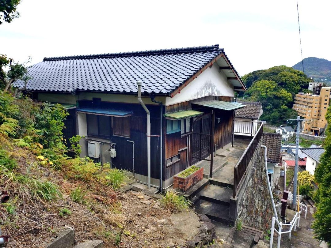 This single-story house, built in February 1967, is situated on a hill overlooking Sasebo Port. The property offers a generous land area of 267.76 square meters (approximately 80.99 tsubo) with a building size of 72.52 square meters (approximately 21.93 tsubo). The layout is a 4K configuration, comprising two Japanese-style rooms (6 tatami mats each), two Western-style rooms (8 tatami mats and 6 tatami mats), and a 4.5 tatami mat kitchen. The structure is wooden, with a building coverage ratio of 60% and a floor area ratio of 160%.
