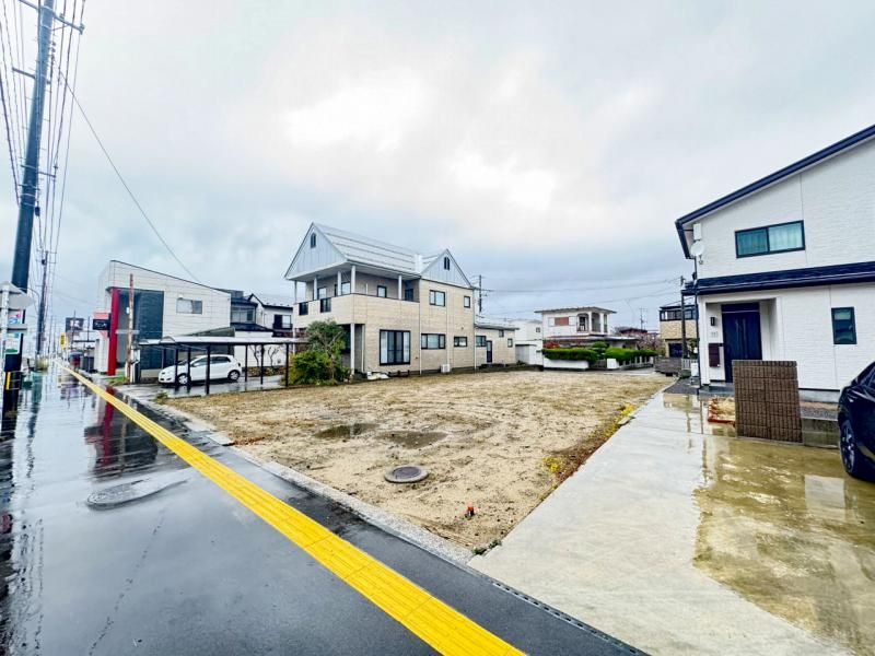The land benefits from road frontage on two sides (south and north). The southern side faces a wide, approximately 22-meter road with a frontage of about 13.8 meters, providing excellent visibility and an open feeling along Prefectural Route 56. The northern side borders a residential area with a 4-meter wide road and a frontage of approximately 12.5 meters. There are no building conditions attached to the land, offering flexibility for residential or commercial projects.