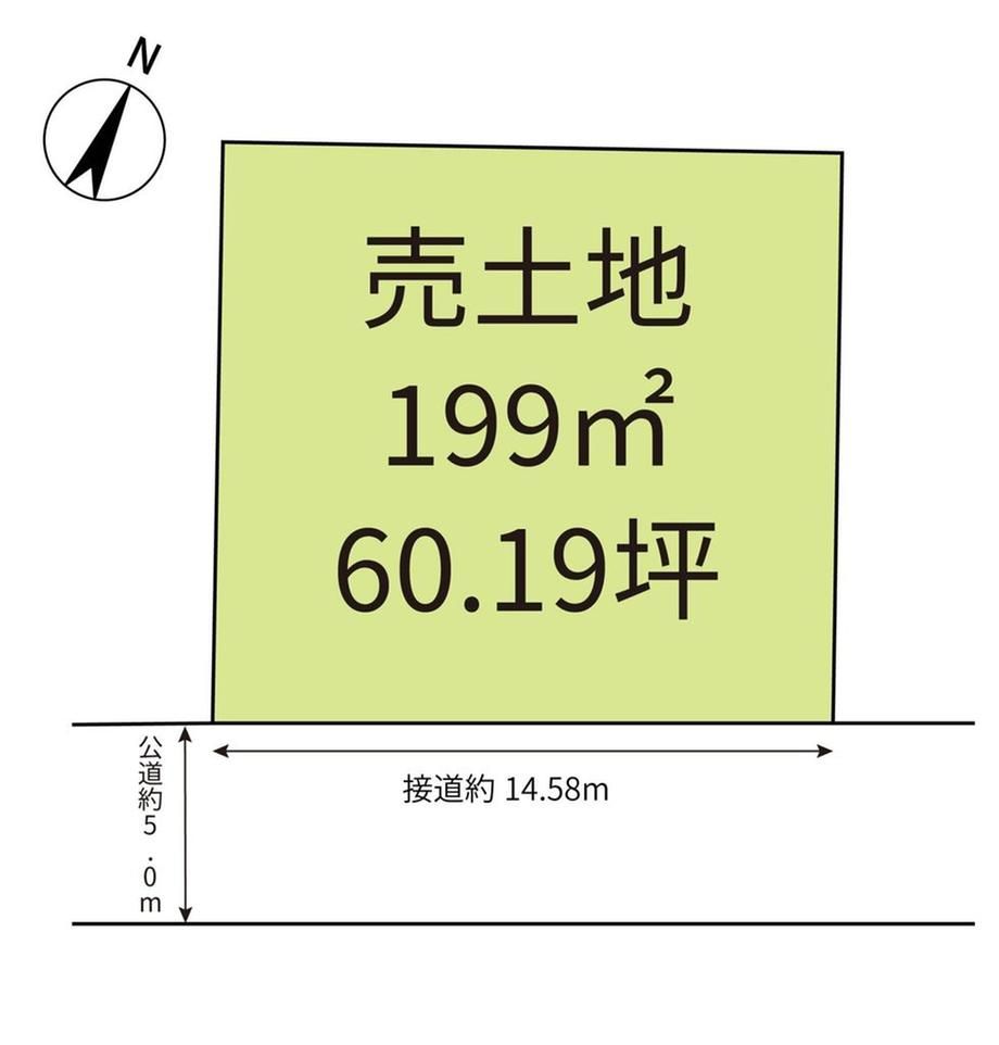This 199 square meter (approximately 60.19 tsubo) plot of land is located in the natural and academic city area of Yurino-ki Dai in Hachioji, Tokyo. The land is vacant and ready for construction, with demolition work completed at the end of March. The property features a 5-meter wide frontage on the southeast side, with a total road frontage width of 14.6 meters. There is no private road burden.