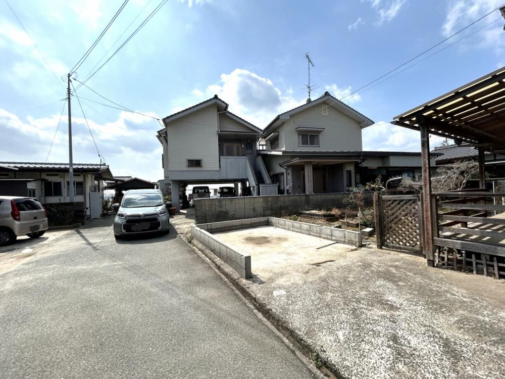 Key features translated from the agent's notes include the property being a single-story home with space for parking expansion. It is situated on a corner lot with road frontage on two sides. The current floor plan offers four rooms plus a dining-kitchen, and the condition of most of the fittings is good, allowing potential buyers to save costs by renovating only the necessary areas. The house is bright, with good natural light from the garden. Specific equipment notes mention a system kitchen, counter kitchen, and gas cooktop. The bathroom window connects to a covered area (差し掛け) for privacy. The property includes a spacious entrance, a living room connected to a wooden deck suitable for BBQs or children's pools, and ample storage throughout. The garden is large enough to potentially expand parking to accommodate up to three cars or to create a vegetable garden. A notable feature is the exterior kitchen in the covered area near the entrance, which is ideal for washing vegetables from the garden or for fishing enthusiasts. The wooden deck in the garden is sturdily built, likely requiring only replacement of the corrugated panels. Termite control comes with a 5-year guarantee from the construction date for the treated areas only. The lighting fixtures appear to have been recently updated, and the vanity has a three-sided mirror. The toilet has a window. The dishwasher attached to the hanging door in the kitchen is currently faulty.