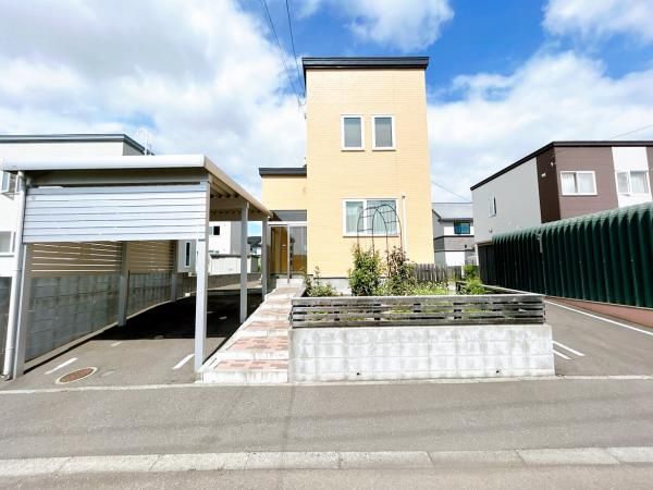 The property boasts excellent parking facilities, with space for three standard-sized cars in parallel, including a garage, carport, and open-air space. The garage measures approximately 2.6m in width and 2.3m in height. The location is highly convenient, just a 9-minute walk (750m) from Horomui Station on the Hakodate Main Line, making commutes straightforward.