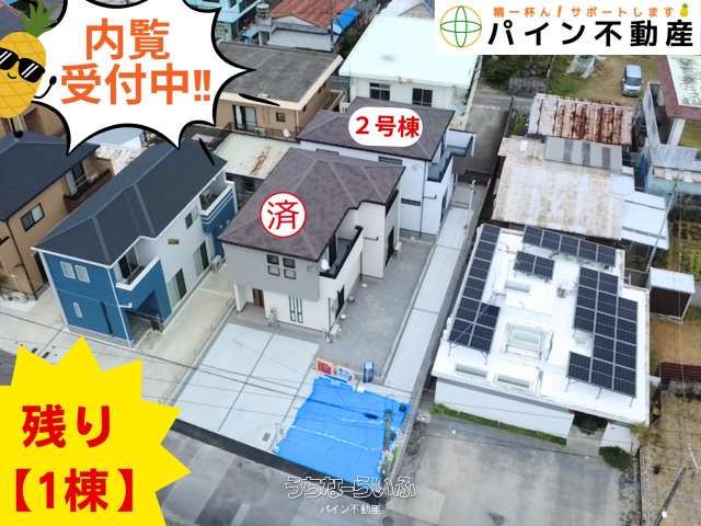 This newly constructed detached house, completed in January 2026, offers a spacious and well-equipped living environment in Uruma City's Ishikawa district. The property features a 4LDK layout with a total floor area of 104.33 square meters, situated on a 161.51 square meter plot of land. The land is described as having an extended, irregular shape, is level, and faces south, providing good sunlight.
