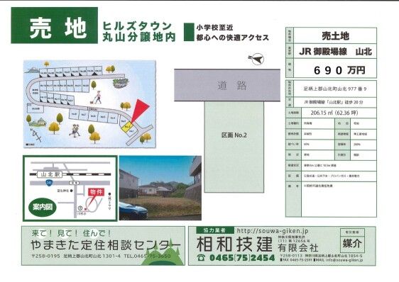 This vacant land plot, designated for residential use, presents a rare opportunity to build a home surrounded by the natural beauty of Yamakita Town in Kanagawa Prefecture. The property is a level, cleared plot of land with a total area of 206.15 square meters. It is situated in a Quasi-Industrial District, offering a building coverage ratio of 60% and a floor area ratio of 200%, providing ample scope for construction. The land rights are freehold (ownership), and the current condition is vacant land, ready for development. The handover timing is negotiable.