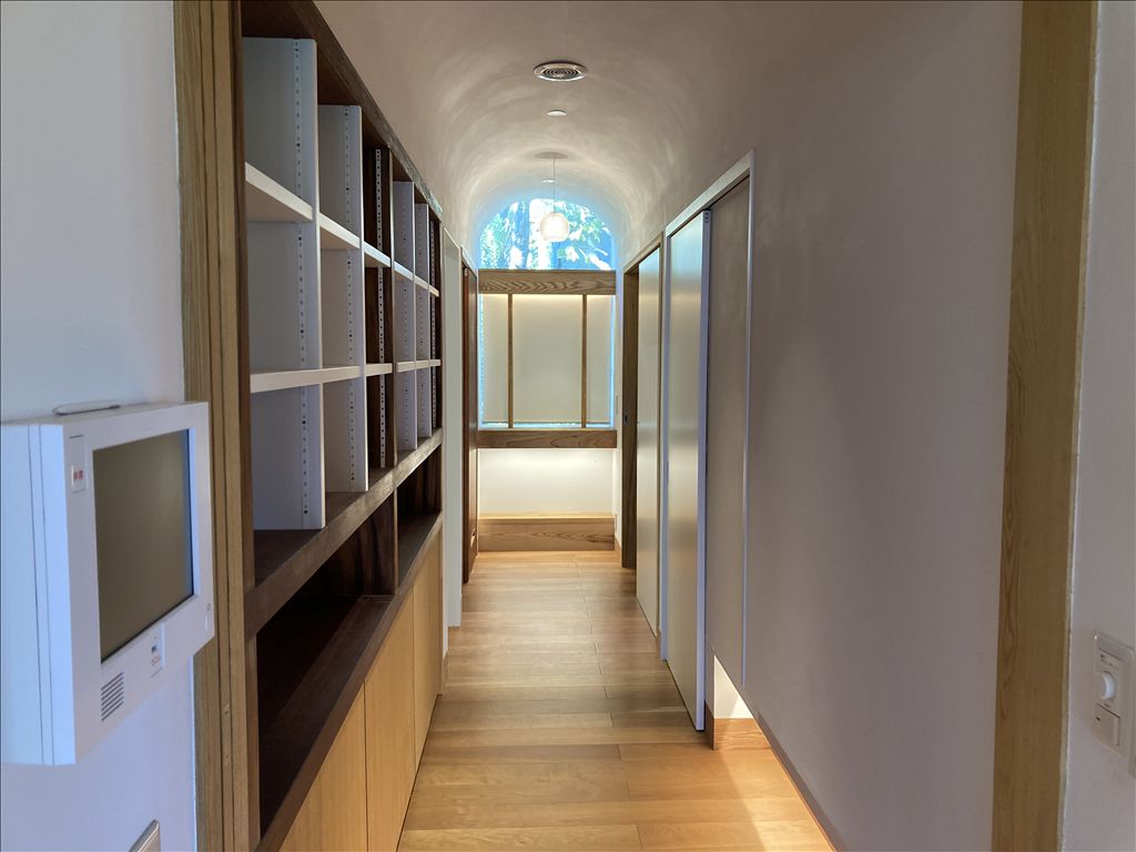 The residence itself is spacious and thoughtfully designed. It features a 3LDK layout plus two storage rooms and a service room. The approximately 37-tatami mat south-facing living-dining room is a highlight, filled with natural light. The home includes authentic Japanese elements such as a tatami room built to tea ceremony specifications, complete with a central hearth and a preparation area (mizuya). Another room can serve as a study, and the living area is equipped with a wood-burning stove for cozy warmth. The property's outdoor amenities are equally impressive, featuring a footbath on the first-floor terrace and a beautifully maintained garden on the south side of the plot. Parking is available for two vehicles.