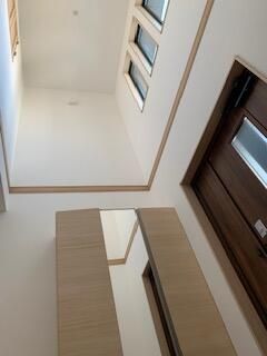 This newly constructed two-story house, located in Suminoe Ward, Osaka City, presents a spacious and modern living environment. The property features a generous land area of approximately 38.85 tsubo (128.46 sqm) and a building area of about 35.06 tsubo (115.92 sqm). The layout is a comfortable 4LDK, with all rooms being 7 jo (approx. 11.5 sqm) or larger, ensuring ample space for family life. A distinctive feature is the entrance with a void (吹抜), creating a sense of openness and spaciousness from the moment you step inside.
