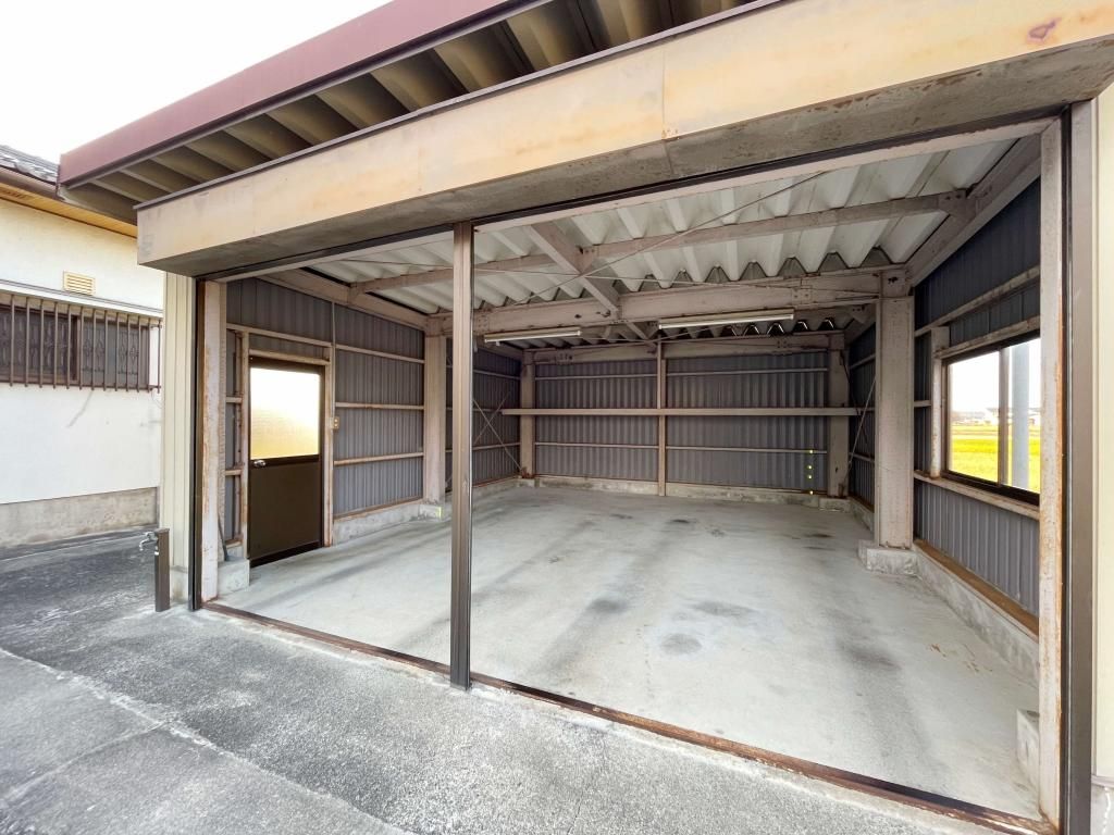 According to the agent's notes, the property includes parking for four vehicles, comprising two garage spaces and two carport spaces. A critical detail is the presence of an unregistered auxiliary building (a garage measuring 29.75 square meters). The seller intends to bear the cost and complete the registration for this structure. The home is equipped with city gas, a system kitchen, two toilets, a bath with re-heating function, a monitor-equipped intercom, and is situated in a quiet, south-facing residential area.