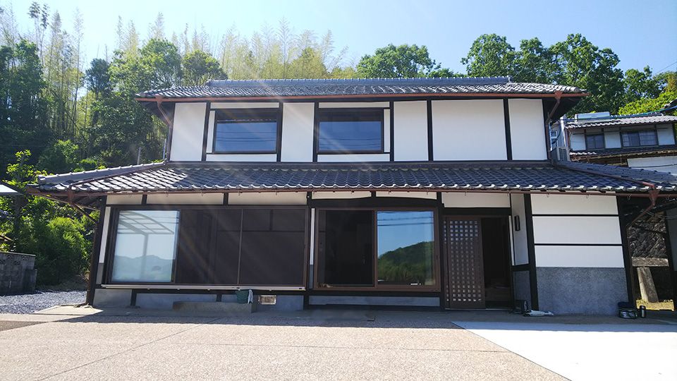 Practical upgrades include a complete overhaul of the wet areas. The old-fashioned kitchen was relocated and replaced with a new face-to-face counter style kitchen. The bathroom and toilet were also renovated, successfully balancing the kominka atmosphere with contemporary livability. The exterior was significantly refreshed with repainted walls and enlarged windows. The front garden was cleared of trees to create a large parking space for more than five cars, which also greatly improved sunlight into the building.