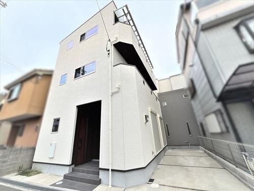 This spacious 4LDK detached house, built in October 2021, offers contemporary living in a quiet residential area of Ikeda City, Osaka Prefecture. The property features a total floor area of 110.02 square meters spread over three stories, with a land size of 82.74 square meters. The layout includes four bedrooms, a walk-in closet, and a separate bathroom and toilet.