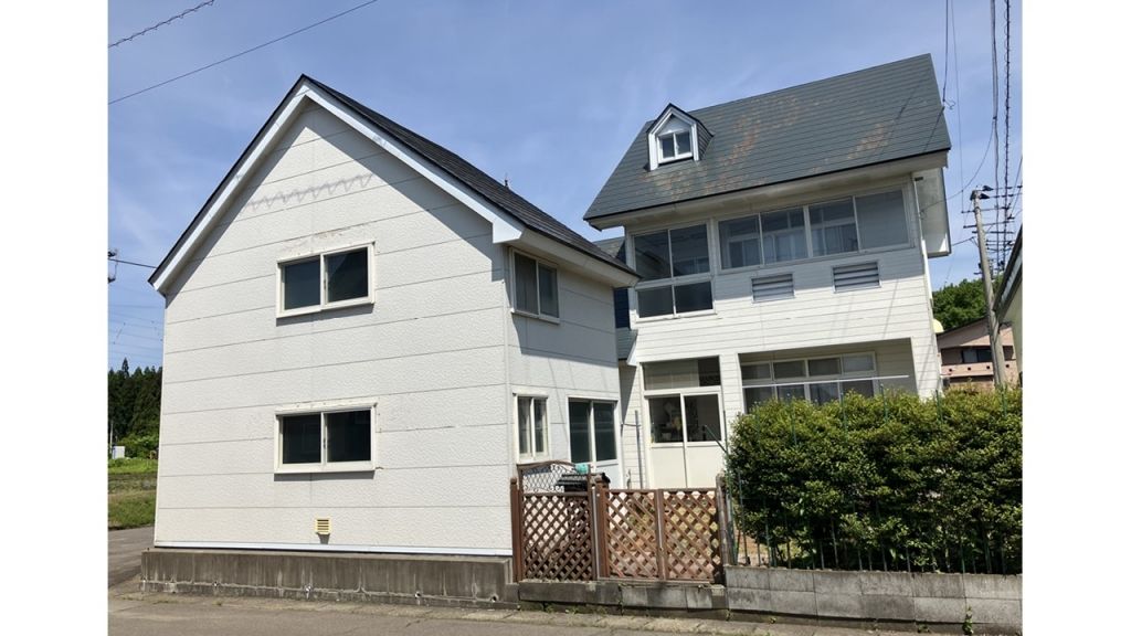 This detached house for sale in Odate City, Akita Prefecture, offers a generous living space of 124.23 square meters on a 200.37 square meter corner plot. Built in January 1986, the two-story wooden structure features a 5DK layout, providing five rooms plus a dining-kitchen area. The property is situated on a quiet residential street in a southwest-facing corner location, ensuring excellent sunlight. Key features include a carport for one vehicle, a south-facing balcony, and a unique open-plan entrance with a high ceiling. The second floor boasts attic storage space, perfect for storing seasonal items.