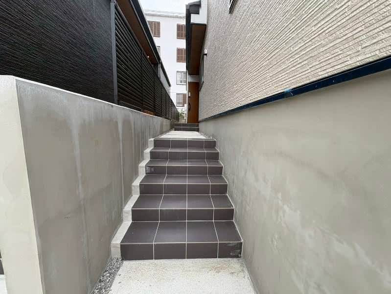 This newly built detached house, completed in 2025, presents a modern and spacious 4LDK layout in the Oyama district of Ginowan City, Okinawa. The property features a generous total floor area of approximately 99.78 square meters (about 30.2 tsubo) on a land plot of about 192.52 square meters (58.2 tsubo). The single-story design offers a convenient and accessible living environment. Key equipment includes a system kitchen with a counter and water purifier, propane gas, a bath dryer, a bidet toilet, a separate washbasin, a walk-in closet, underfloor storage, and a video monitor intercom. The structure is wood-framed and other.