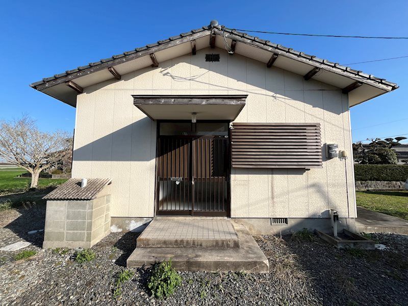 This charming detached house, located in the peaceful rural setting of Saga Prefecture's Ogi City, offers a comfortable living space with a generous land plot. The property features a 2K layout with a total building area of 43.88 square meters, situated on a substantial 386.36 square meter plot. Built in December 1993, this 33-year-old wooden single-story home provides a serene environment with southern-facing rooms that benefit from excellent natural light and ventilation, creating a pleasant and bright living atmosphere. The property is characterized by its calm ambiance and views of expansive rice fields and pastoral scenery.