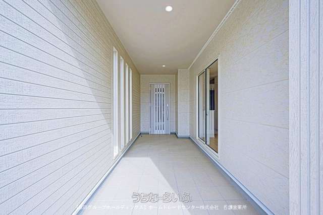 The property includes several notable features and equipment. A dedicated indoor space for a washing machine is provided. The house is designed with a family-friendly layout that considers daily living patterns. Additional features include a "Yuntaku" porch and terrace, underfloor storage, storage in all rooms, a void space, and an inner balcony. The building incorporates earthquake-resistant and base-isolation structures, external insulation, and formaldehyde-free materials. It also holds certifications as a Long-Term Excellent Housing property and is eligible for the Flat 35 housing loan.